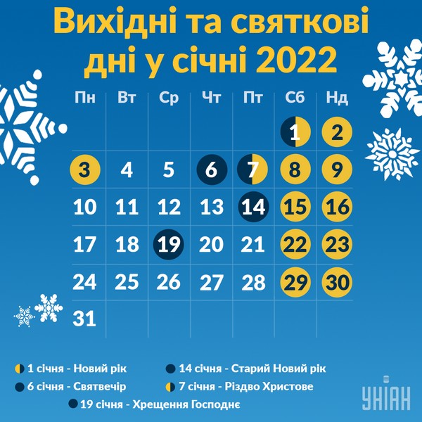 У січні 2022 року українців чекає 12 вихідних днів