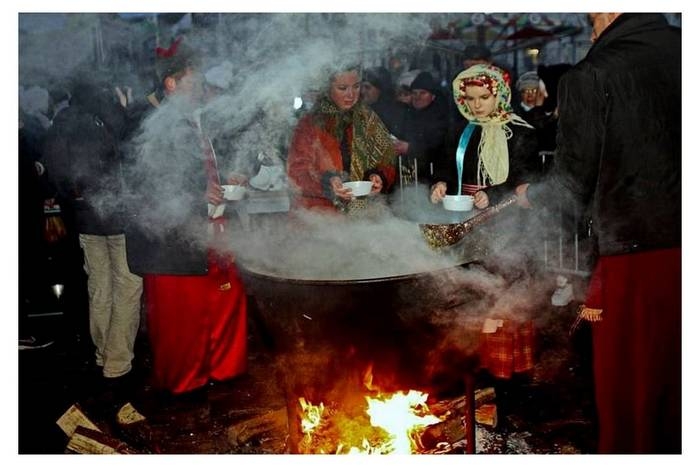 Кулеш в Чернигове готовили в течение трех часов, и все это время зрителей развлекали аутентичными песнями фольклорные коллективы из Лашуков и Великого Дырчина. Женщины исполняли обрядовые песни, колядки. Они убеждены: если блюдо готовить без души, оно не будет иметь такой энергетической силы, как в казацкие времена.