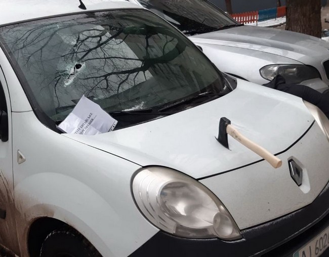 «Автівку б’ють йому вже другий раз за рік, – каже депутат райради. – Перший раз було майже те ж саме: попередження, сокира, але збитки були значно меншими».