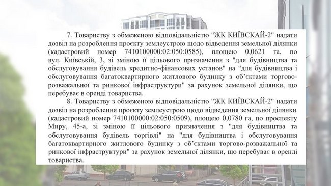 Компанією-забудовником — ТОВ "ЖК Київскай-2", володіє депутат Чернігівської міськради від фракції "Слуга народу" Юрій Тарасовець.