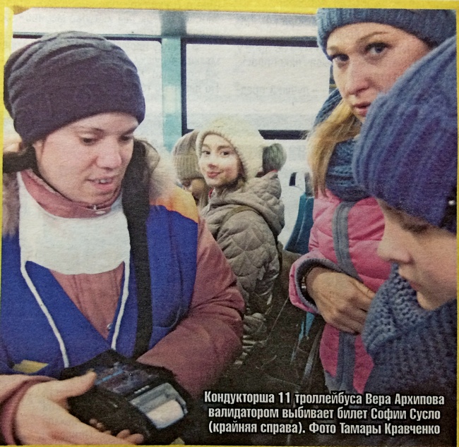 14 января, за день до подорожания, в «11-ом» троллейбусе Анастасия Штилюк, швея черниговской фабрики «ТК Стиль», протягивает кондукторше 36-летней Вере Архтповой бело-синюю карточку, получает билетик.