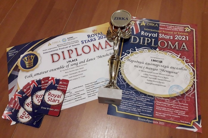 Учасники Народного аматорського ансамблю пісні і танцю «Менщина» Менського будинку культури дистанційно взяли участь у Міжнародному онлайн-конкурсі «Royal Stars 2021» в Лондоні, що проходив у декілька етапів.