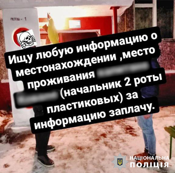 В одной из социальных сетей появились информационные сообщения о намерениях физической расправы над сотрудником патрульной полиции и поиске данных по его месту жительств. Во время проведения оперативно-розыскных мероприятий правоохранители установили автора вышеперечисленных публикаций. Им оказался 23-летний житель Чернигова, ранее судимый за телесные повреждения и групповые ограбления. На своей странице в соцсети злоумышленник публично угрожал заместителю командира 2-й роты. Также обещал выложить видео насильственных действий.