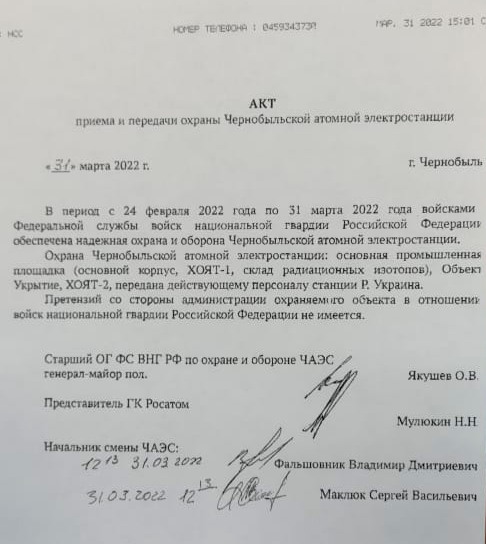 "Офіційно повідомляємо, що розпочався початок виходу з території ЧАЕС російських окупаційних військ.