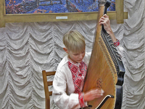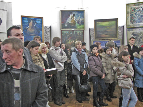 На виставці представлено близько 40 художніх робіт. Зараз у школах вивчають козацтво, тому на відкритті виставки було багато школярів. Відкрили виставку молоді бандуристи з дитячої музичної школи. У їх виконанні прозвучали народні українські пісні.