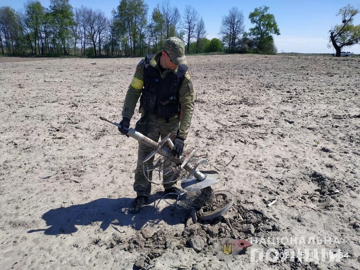 Вчора співробітники вибухотехнічної служби поліції області відпрацювали небезпечну територію на Городнянщині. У полі поліцейські виявили понад 700 бойових касет від протитанкової авіаційної бомби, яку скинули на нашу землю військовослужбовці рф.
