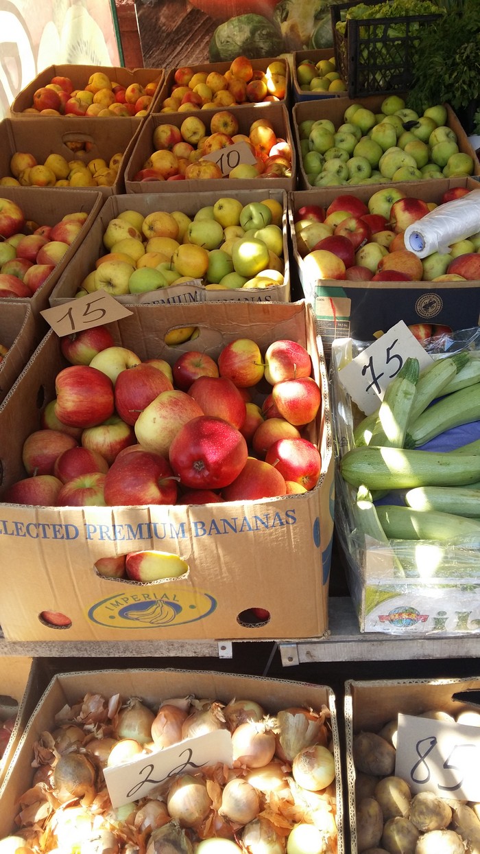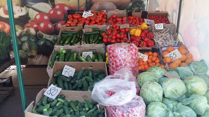 Набагато веселіше, ніж у “Союзі”, виглядає прилавок овочів у торговому наметі з логотипом “Юко”, встановленим, як і в минулих роках, поряд із “Союзом”. На прилавках - різноманітний асортимент: кілька видів помідорів, яблук, огірків, капуста, редиска, картопля, полуниця, зелень.