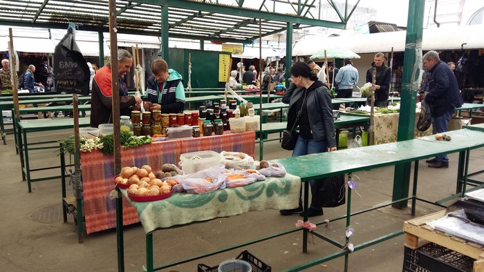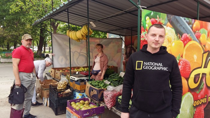 Намет біля “Союзу” - один із п'яти, облаштованих у мікрорайонах міста, і навіть обладнаний бездротовими терміналами, щоб покупці могли розплатитися карткою. Продавець Марина охоче спілкується з покупцями, докладно характеризує продукцію, і з появою цього намету у мешканців мікрорайону відпала потреба вирушати на ринки, розташовані досить далеко, тим більше пішки, доки не працював громадський транспорт.
