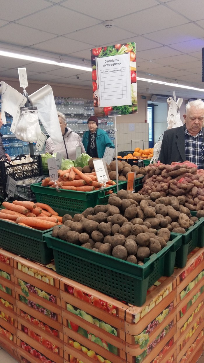 -Ціни в цьому магазині відрізняються з іншими, наприклад, з "АТБ". Таку цибулю, як продають тут, пророслу і гнилу, я б купувала по 12 грн., але не по 17, як пропонується. Користуючись такими магазинами, з такими цінами та з пенсіями у 2 300 гривень, прожити неможливо. До війни, звичайно ж, постачання було набагато кращими, хоча якщо сьогодні немає якогось продукту, то завтра його привезуть, довгих перебоїв не буває.