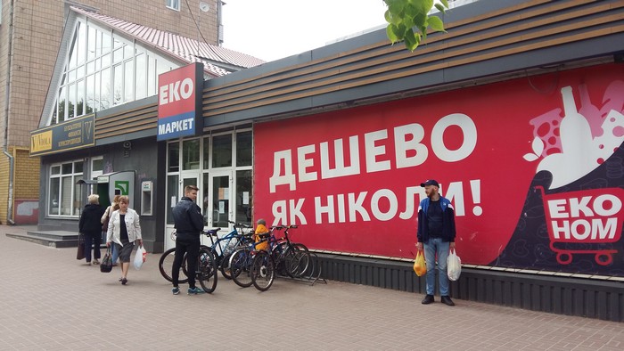 "Еко-маркет" на проспекті Перемоги також не працював деякий час, але зараз його зали заповнені продукцією, як до війни. Хіба що загороджений для доступу відділ алкогольної продукції, адже рішенням голови ОДА Чауса заборонено продавати алкоголь у зв'язку з воєнним часом у всіх магазинах Чернігова. Тут активно застосовується система знижок, особливо щодо м'ясної продукції. З іншого боку, скасували пільги на придбання товарів, зокрема, не діє пенсійне посвідчення.