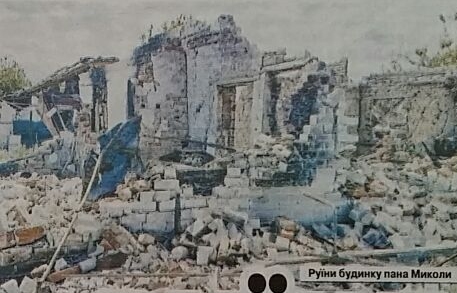 Три оселі однієї великої родини зруйновані вщент. Про будинок самого Миколи Шикути нагадує хіба що димар від каміна, який чоловік виклав сам: «Такого й Танюшці, дочці, збудував. Он його видно! Вцілів».
