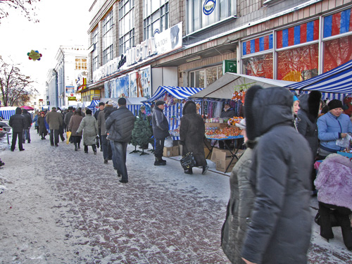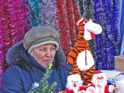 По словам продавцов, предновогодняя торговля еще не достигла своего пика. Следующим местом, где мы поинтересовались ценами, был ряд торговых палаток возле Детского Мира.
