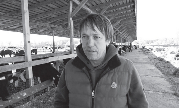 На фото Юрій Кобизський на фермі СВК "Зоря"