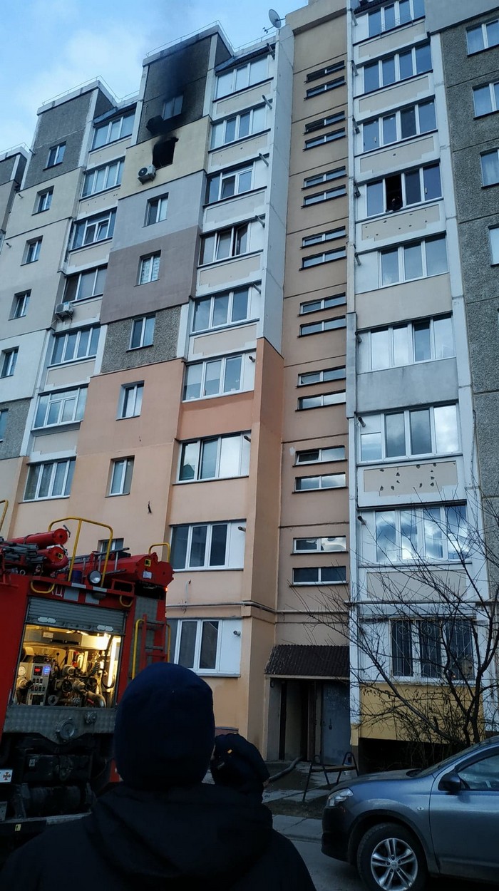 На фото - вікно квартири багатоповерхівки, у якій трапилась пожежа після влучання осколку