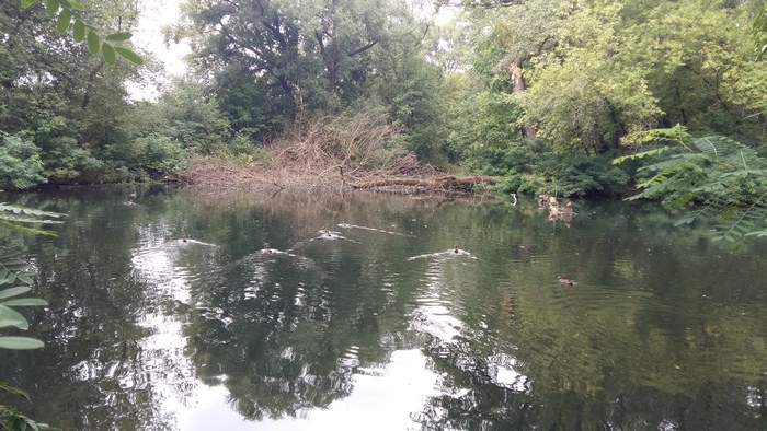 Ще одні "рятувальники" Стрижня, кілька десятків качок, розтинали майже чисту поверхню води і сиділи, наївшись, на зваленому дереві. Можливо, саме вони почистили таким чином Стрижень, бо ще тиждень тому вся річка в цьому місці була вкрита щільним шаром мертвої риби. Крім того, пройшов невеликий дощ, залишки риб придавило на дно, у результаті вода стала чистішою, і неприємний запах пішов. Видно, знає міська влада мудрість: якщо щось довго не робити, то воно саме зробиться.
