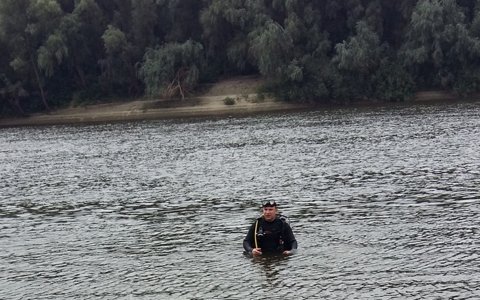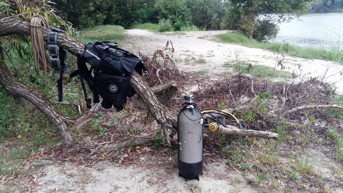 Водолаз-сапер аварійно-рятувального загону ДСНС Олександр Лазебний у водолазному костюмі по воді перейшов до вказаного місця. Приблизно за десять метрів від лінії берега він зупинився, трохи відпочив, адже у воді водолазне обладнання відчувається не так важко і пірнув. По поверхні води пішли бульбашки від його підводного дихання. За кілька хвилин майже в тому ж місці над водою піднялася рука Олександра, один з пальців при цьому був направлений униз, що означало - є. Виринувши, він повідомив, що знайшов уламок "Урагану" без хвоста, він встромився в мул по діагоналі.
