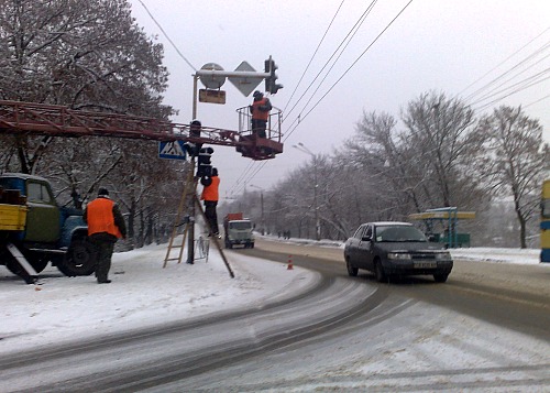 О светофорах: только в нашем городе могут чинить светофоры в центре города днем, в такую погоду и не поставив регулировщика... Видели бы вы лица напуганных водителей!