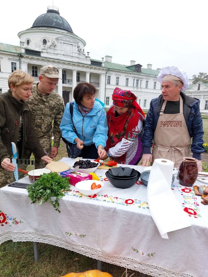 — По телевізору бачити людину — одне, а поспілкуватися наживо — інше. Костянтин веселий, дуже інтелектуальний, — ділиться враженням Катерина Куценко. — Йому сподобалася екскурсія до Національного історико-культурного заповідника «Качанівка». Саме в Качанівці ми і готували квасок. Це «коронна» страва Прилуцького району (до нього входить і Парафіївська територіальна громада). Мене квасок варити навчила бабуся по татовій лінії, нині вже покійна Параскева Дуля. Продукти надала громада. Готували я і Грубич. Були помічники. Я говорила, що за чим нарізати і класти. Зварили 50 літрів.