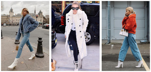 Женские сапожки на каблуке эффектно удлиняют ноги, придавая общему образу особую нежность и романтичность. В этом случае лучше всего из одежды подойдут платья и юбки, длиной до колена. В качестве верхней одежды уместной будет укороченная дубленка в таких же светлых тонах.