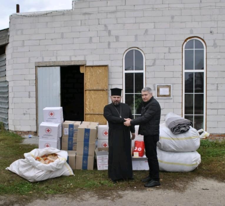 На фото Владислав Кухар передає допомогу Євгену Орді