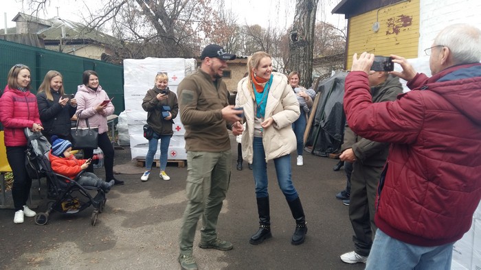 Цього дня гостей приймав у своєму Центрі його директор Микола Романов. З перших годин нападу у лютому тут створився волонтерський центр, добровольці якого робили все, що могли для відповіді нападнику, і навіть більше..