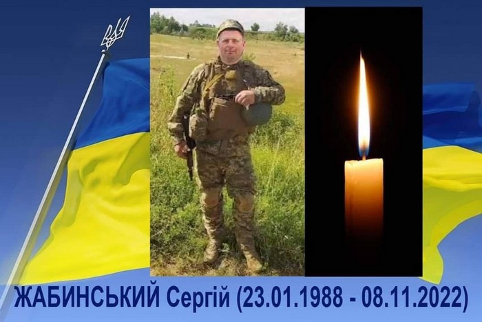 8 листопада 2022 року під час виконання бойового завдання поблизу населеного пункту Андріївка на Донеччині Жабинський Сергій загинув. 17 листопада рідні та побратими востаннє попрощалися з ним, вшанувавши світлу пам'ять воїна у Катерининській церкві та поховавши Сергія на кладовищі "Яцево".
