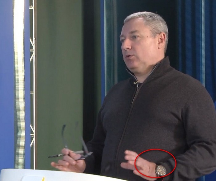 На минулорічних та цьогорічних знімках Руслан Валерійович, як правило був, або взагалі без годинника, або в годиннику класичного зразка, як наприклад, на одному з ефірів телеканалу “Новий Чернігів”. На лівій руці від наврочення носив мотузочку червоного кольору.