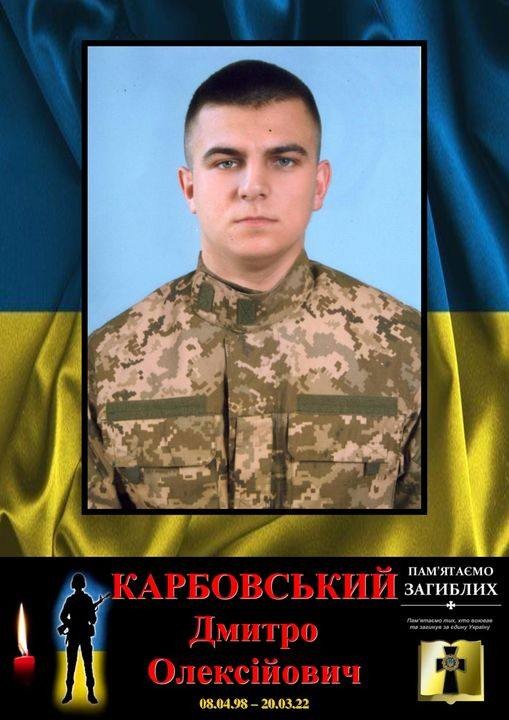 Під час повномасштабної війни він також зі зброєю в руках стояв на захисті суверенітету та територіальної цілісності Батьківщини, але, на жаль, 20 березня 2022 року під час виконання бойового завдання поблизу села Селець на Житомирщині Карбовський Дмитро загинув.