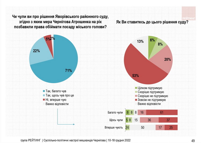 73% чернігівців не підтримують таке судове рішення, лише 14% підтримують.