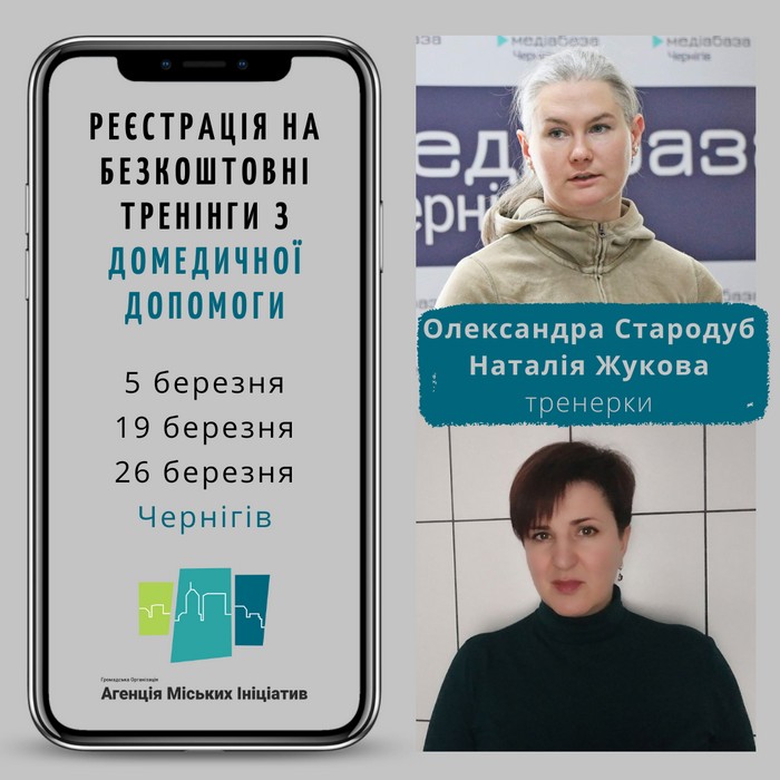 Команда громадської організації “Агенція міських ініціатив” рада повідомити, що триває реєстрація на безкоштовні тренінги з надання домедичної допомоги. Вони відбудуться 5, 19 та 26 березня у Чернігові.