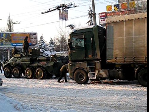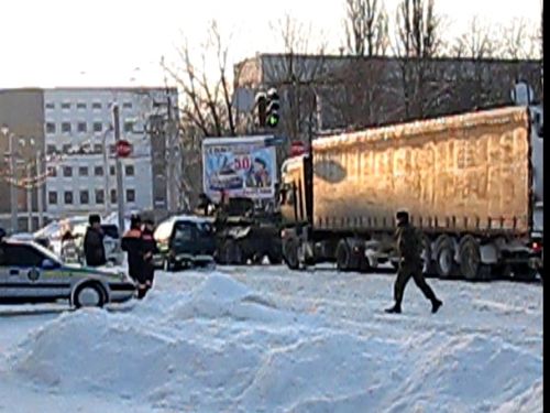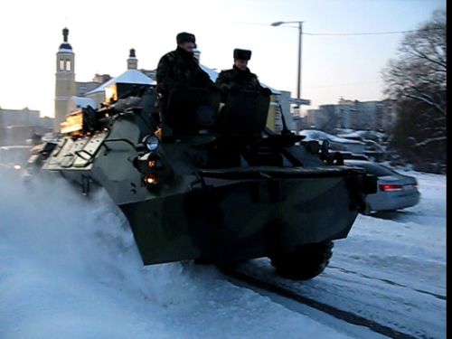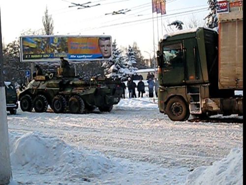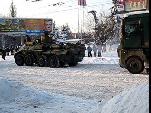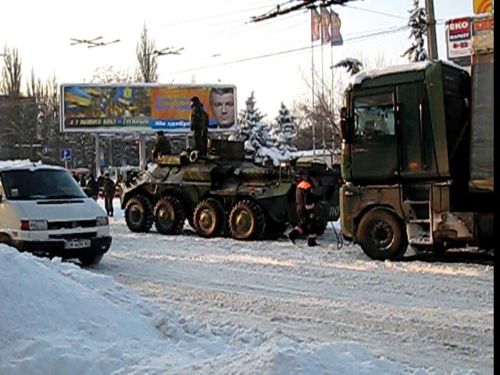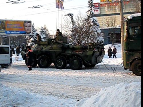 Згодом цей БТР в супроводі автомобілів ДАІ та ВАІ рухався по вул.Київській в сторону ВАТ "Ясен".