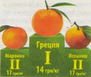 Самые дешевые мандарины из Грузии по 10 грн/кг и по 12 грн/кг. Хотя цена и приемлемая, но на вкус мандарины кисло-сладкие. Среднюю ценовую категорию имели мандарины из Греции — 14 грн/кг. А вот самыми дорогими оказались мандарины из Марокко и Испании — 17 грн/кг.
