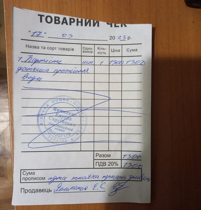 На Аліекспресі такий прилад коштує близько 200 грн. із безкоштовною доставкою з Китаю. Після покупки чоловік виписує товарний чек із печаткою на ім'я ФОП Якименко Едуард Сергійович, реєстраційний номер 3641207179.