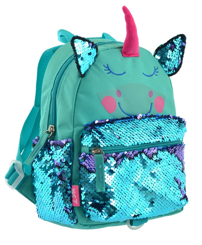 - С блестками. Рюкзаки, украшенные блестками или пайетками, пользуются популярностью у многих девочек. Они обычно представлены во множестве ярких цветов и оттенков.