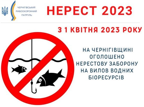 З 1 квітня 2023 року з метою охорони нерестовищ у рибогосподарських водних об’єктах та забезпечення сприятливих умов нересту водних біоресурсів, відповідно до рекомендацій Інституту рибного господарства Національної академії аграрних наук України, наказом Чернігівського рибоохоронного патруля від 23.03.20213 № 36-од на Чернігівщині встановлено нерестову заборону на промислове, любительське і спортивне рибальство.