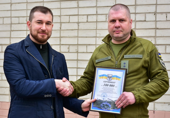 — З першого дня створення територіальної оборони і з першого дня повномасштабного вторгнення, громада міста завжди підтримувала вас у всьому. Тому що ви — наші захисники. Зараз зовсім інші виклики і у вас, і у міста, але ви завжди можете розраховувати на наше надійне плече. Вчора надійшло звернення на необхідність покращення можливостей відбиття атак ворога з повітря. Сьогодні ми провели засідання виконкому і виділили з бюджету міста 180 тис. грн на ці потреби, — сказав під час вручення сертифіката Олександр Ломако.