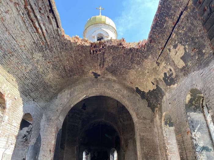 Двері Вознесенської церкви відчинені. Здається, що ніби всередині хтось господарює, але це тільки вітер і птахи. У центральній частині будівлі, що є архітектурною пам’яткою початку ХХ століття, скидана купа цегли, через зруйнований купол видніється небо. Під час окупації російські військові на території біля церкви поставили військову техніку, а в храмі зробили склад боєприпасів. Під час боїв внаслідок детонації церква горіла. У ході обстеження релігійної споруди після звільнення села працівники ДСНС виявили не тільки залишки снарядів, але й тіла закатованих людей.