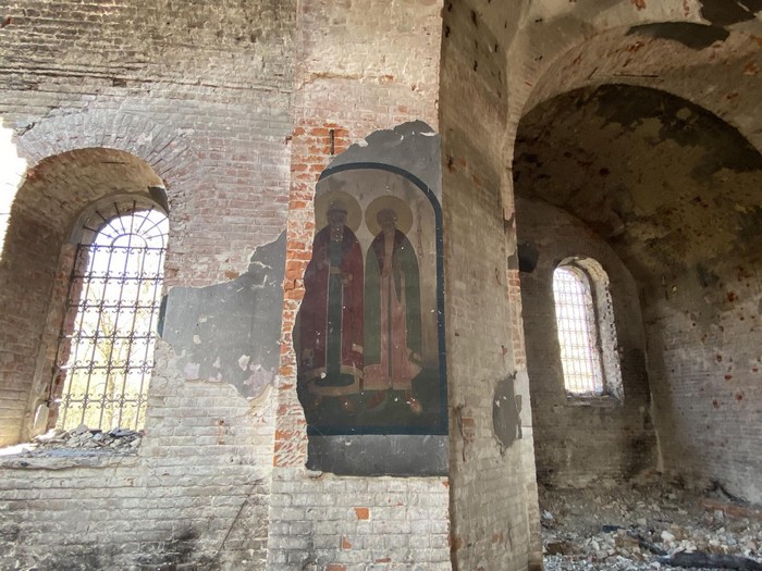 В обгорілому храмі вціліла фреска чернігівських святих Михайла і Федора