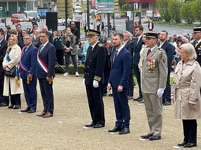 Пам'ять всіх жертв, чиє життя забрала Друга світова війна, вшанували покладанням квітів та хвилиною мовчання. В.о. міського голови Чернігова Олександр Ломако зробив це у супроводі двох українських дітей, які проживають у Реймсі.