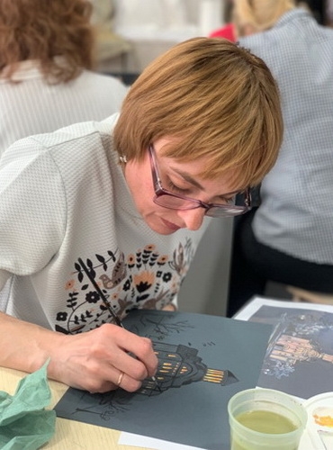 «Ми з Анною особисто не були знайомі й ніколи не бачилися наживо, вона знайшла мене у соцмережах через спільного знайомого. Пані Анна побачила, що у нас восени пройшов проект з арт-терапії для Спілки жінок Чернігівщини, і написала мені з пропозицією спільно організувати подібний проект. Їй захотілося зараз, під час війни, допомогти українкам через мистецтво, естетику, гармонізацію емоцій та почуттів. До того ж, малювання – це великий антистрес. Анна запитала, що б ми могли організувати за її підтримки, і який має бути кошторис. Я написала й отримала підтримку двох проектів. Перший – «Арт-натхнення» для матусь нинішніх студійців та випускників студії. Я дивлюся на жінок, які зараз нас відвідують, і розумію, що проект для них був дуже на часі. Для мене «Арт-натхнення» цінне тим, що жінки, які прийшли зі зруйнованими через війну сенсами життя, тут відновлюються. У них з’являється енергія та потенціал для щасливого життя.