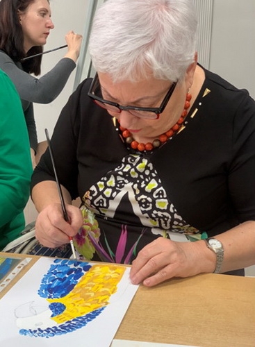 Пані Алла: «Для мене найголовніше в цьому проекті те, що тут я можу дати змогу психіці перепочити. Що б ми не робили зараз, ми знаходимось під тиском того жаху, який відбувається. А коли ти малюєш, то дійсно занурюєшся у спокій. Я не знаю, як це працює. Мабуть, тому, що задіяні і очі, і мозок, і руки. Але ти забуваєшся так глибоко, ніби заснула. І це відчуття зі мною залишається, це працює не лише в моменті. У мене й наступного дня зберігаються світлі спогади та емоції. Заняття також дозволяють розбавити повсякденність. Це спілкування, нові люди, нове повітря та гарний привід завести цікаві знайомства».