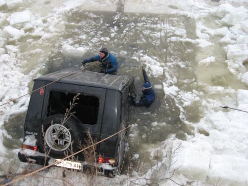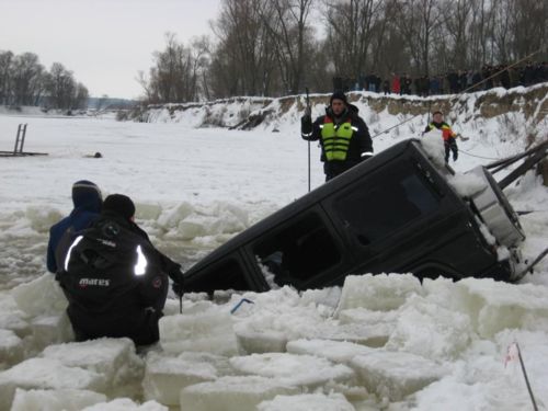 О 16:30 23-го грудня на Чернігівщині поблизу с. Вишеньки, Коропського району силами спеціалізованих підрозділів МНС України та суб’єктів реагування був піднятий з р. Десна джип Мерседес-Бенц G-200.