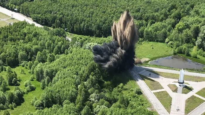 Відео підриву ділянки дороги на кордоні Чернігівської області, біля "Трьох сестер", оприлюднили 30 травня пропагандистські ЗМІ.