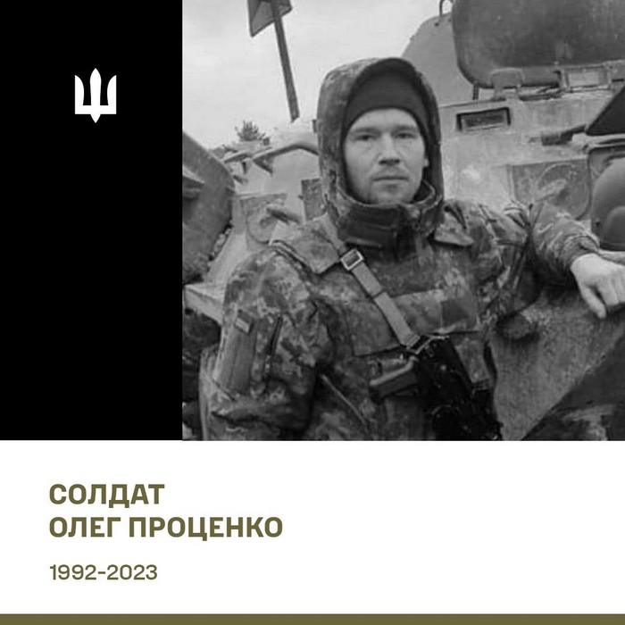 На жаль, 2 червня 2023 року під час виконання бойового завдання на Донеччині Проценко Олег загинув. Попрощалися з воїном у селі Охіньки. Поховали на місцевому кладовищі.