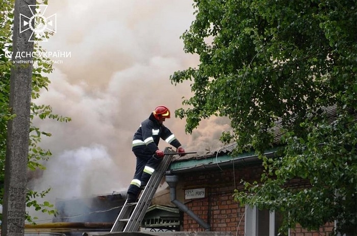 Палаючий будинок у Чернігові гасили 6 відділень пожежників (фото, відео)