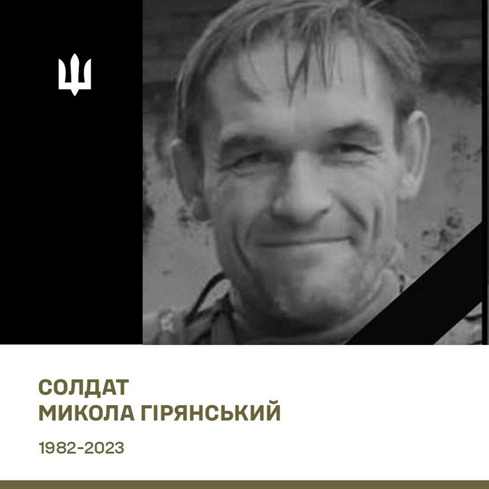 На жаль, 13 червня 2023 року під час виконання бойового завдання на Донеччині Гірянський Микола загинув, отримавши поранення, які виявилися несумісними з життям.