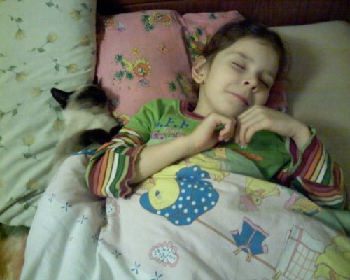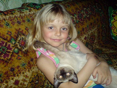 На фото моя дочка Тома с кошкой Марусей. Марусе 1 год, сиамская