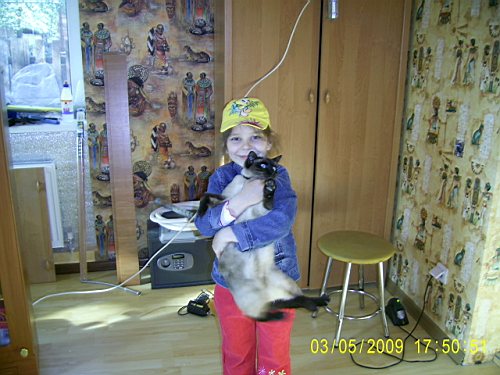 На фото моя дочка и кошка Пумба, тайской породы, 1год и 5 месяцев
