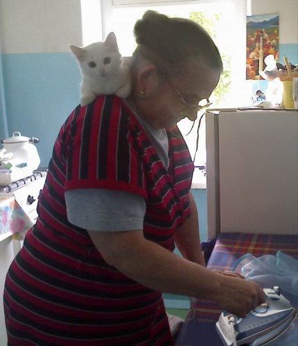 Работаю в многозадачном режиме - помогаю хозяйке гладить и лечу ей шейный остеохондроз