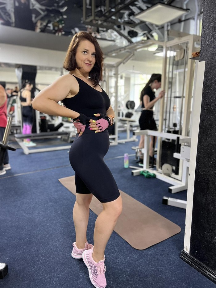 — У 2021 році важила 75 кілограмів. Шкіра всюди обвисала. Найпроблемнішими були розтяжки. Удома впоратися з ними не змогла. Вирішила піти в спортзал. Тоді абонемент з тренером коштував 900 гривень, зараз — 1050. Місяць походила, стало цікаво, як же стають тренерами. Багато читала, вправи всі випробовувала на собі. Троюрідна сестра Наталія Труш викладає діткам в Ніжині гімнастику. У неї свій мистецький центр «Мрія». Її так вразило моє схуднення, що запросила до себе. Виділила зранку і ввечері години, аби я проводила тренування для дівчат, які хочуть схуднути. Закупили каремати, м’ячі, гантелі, резинки.